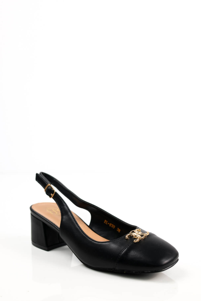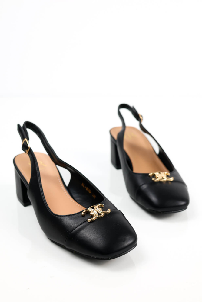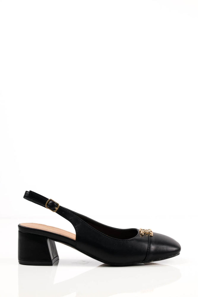 Μαύρες Χαμηλές Γόβες με Χρυσή Λεπτομέρεια