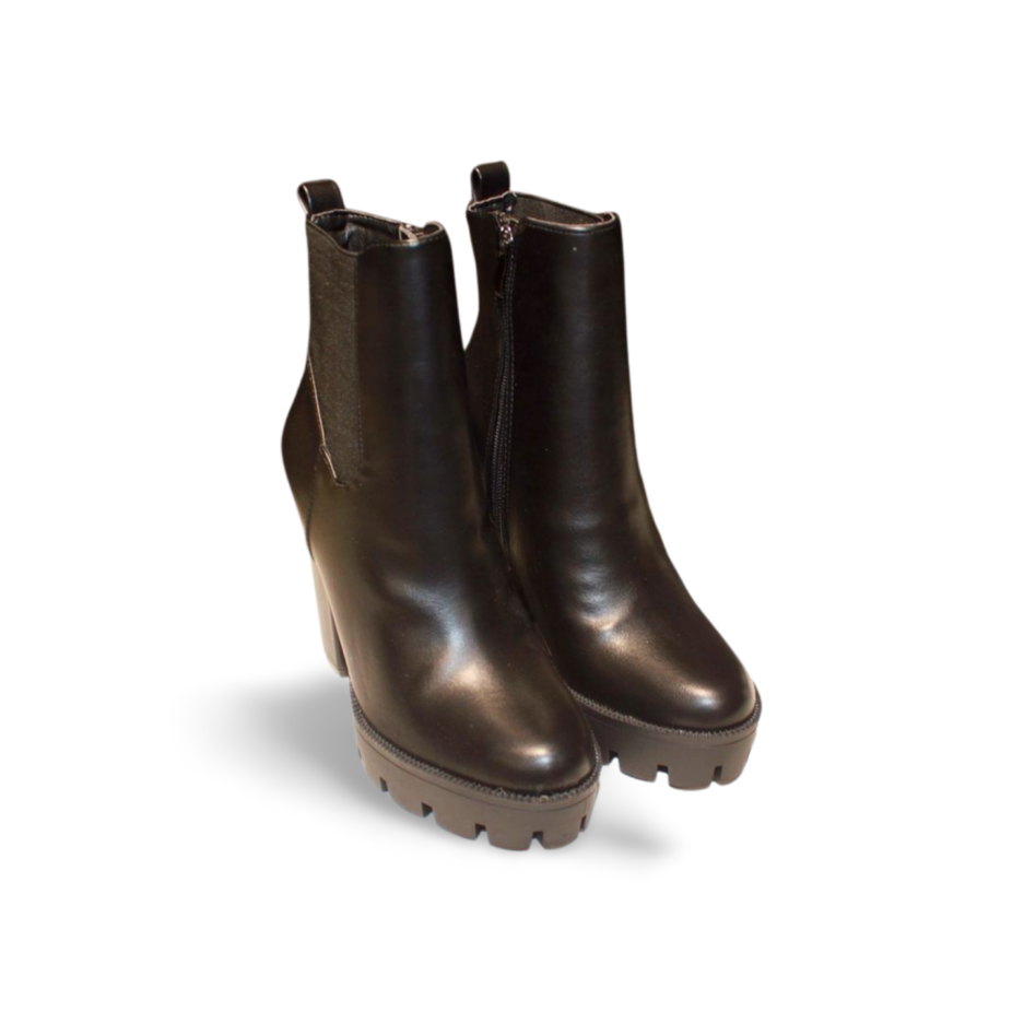 Μποτάκια Μαύρα Με Τετράγωνο Τακούνι
