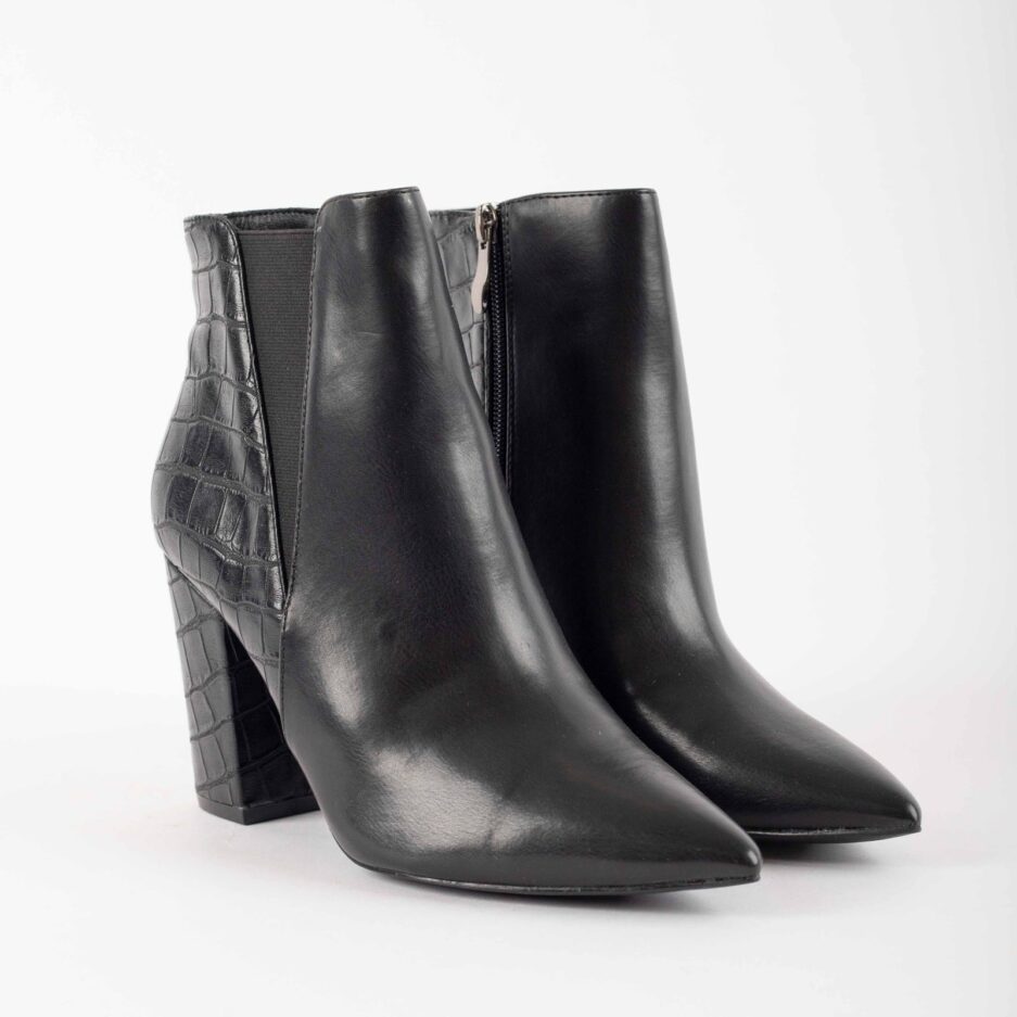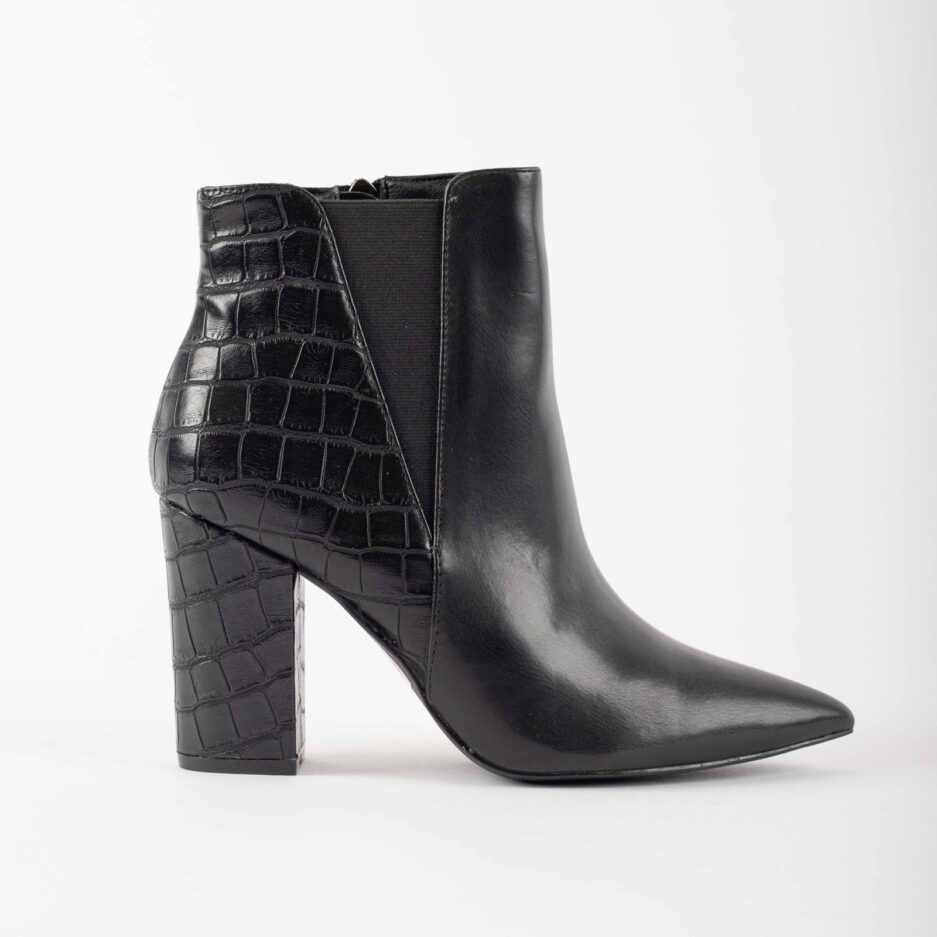 Γυναικεία Μποτάκια Μαύρα με Croco λεπτομέρεια