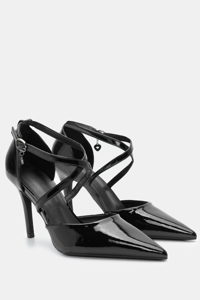 Γόβες Λουστρίνι Μυτερές με Χιαστί Λουράκια