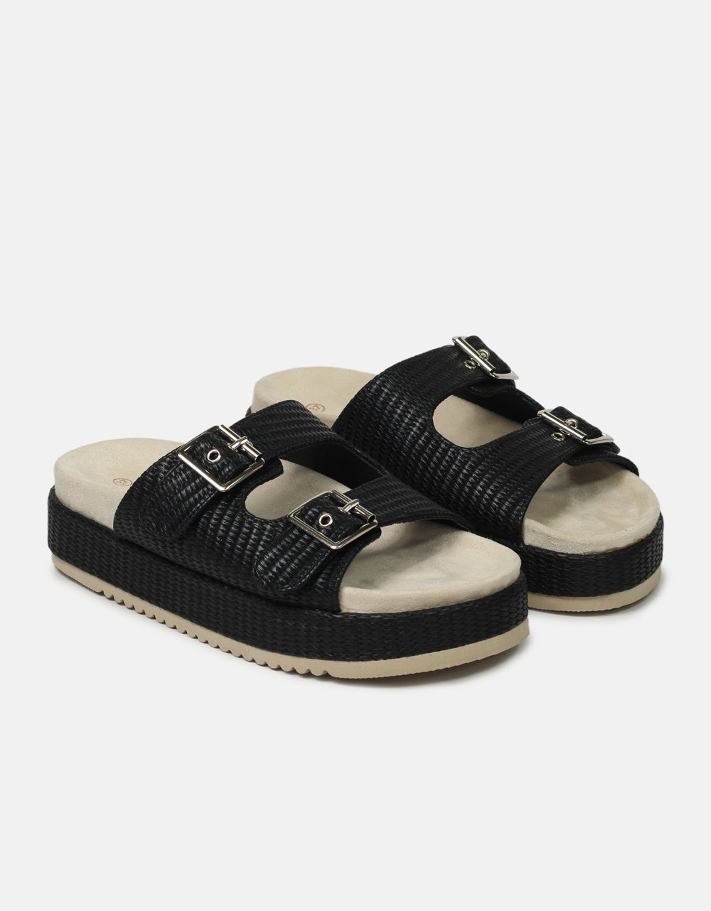 Σανδάλια με διπλό τοκά και σχέδιο πλέξης Μαύρο